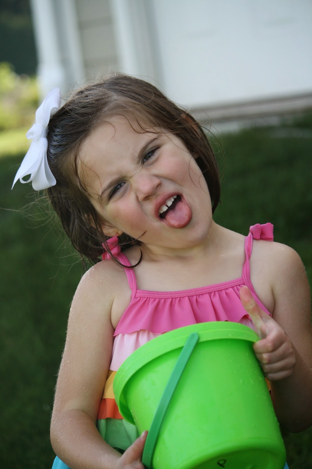 We can't miss feeding the animals. One little goat got past the first fence and tried to nibble Gianna's fingers. She ran away real quick!